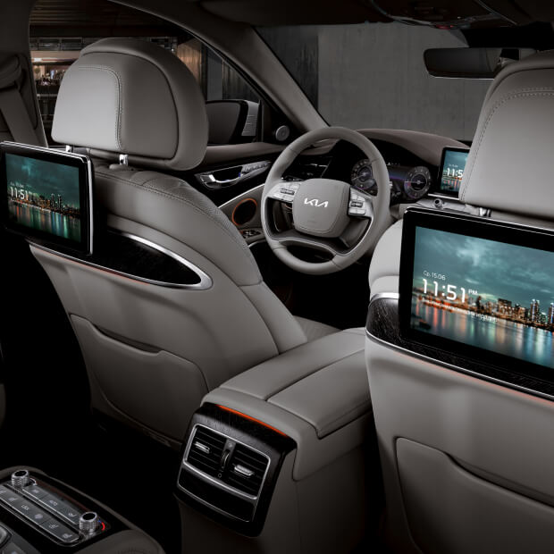Салон Kia K9 поможет Вам избавиться от вчерашней усталости и начать день с новым вдохновением. Эргономичные удобные сиденья, роскошный интерьер, инновационный интерфейс с функцией распознавания рукописного ввода обеспечат исключительный опыт, который заинтригует и вдохновит Вас.